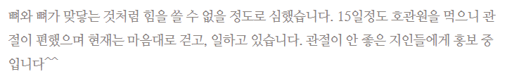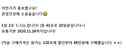 혹시 제가 얼마 전에 쓴 관절보궁 가격 후기 효능에 대해서 궁금하시면 저의 예전 글을 읽어주세요 :)