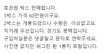 위의 글들은 중고나라에서 호관원 가격 검색을 하면 나오는 판매히스토리입니다.