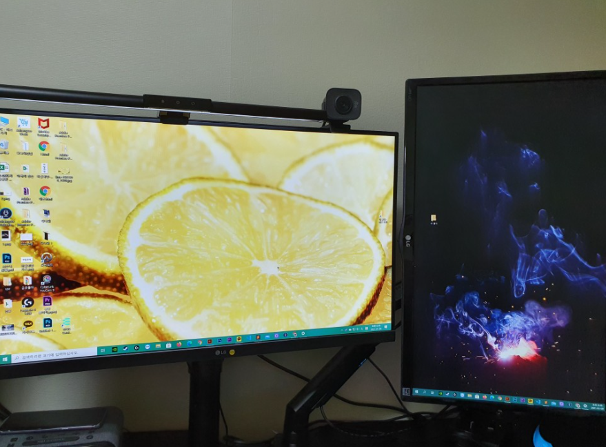 하지만 뭔가 이상하죠? 저처럼 듀얼 모니터 배경화면을 설정하고 싶으신데 한쪽은 세로모드를 쓴다? 그럼 좀 어색할 수 밖에 없습니다.
