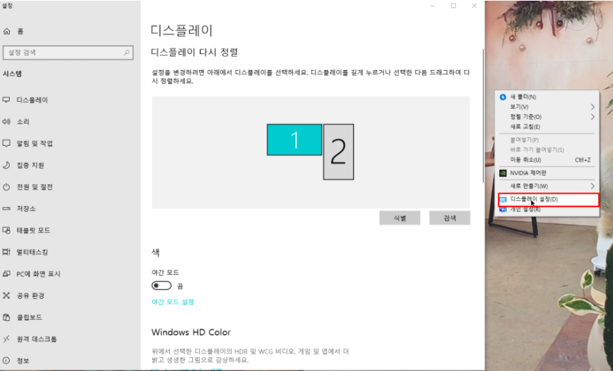 아까 봤던 모니터 넘버를 기억하신다면 원하시는 디스플레이에 클릭을 하시면 되겠습니다.