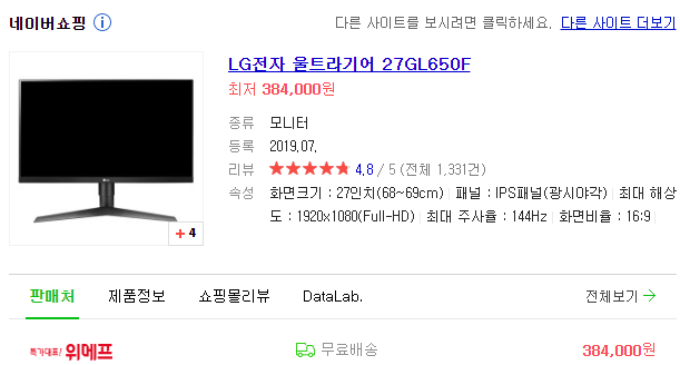 저는 게이밍 모니터를 구매한다면 당연히 lg27gl650f를 추천합니다.