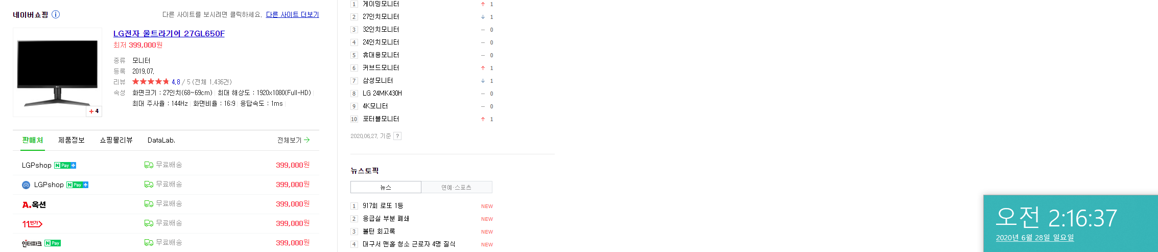 하지만 오늘 2020-06-28 기준으로는 399,000원으로 판매가 되고 있습니다.
