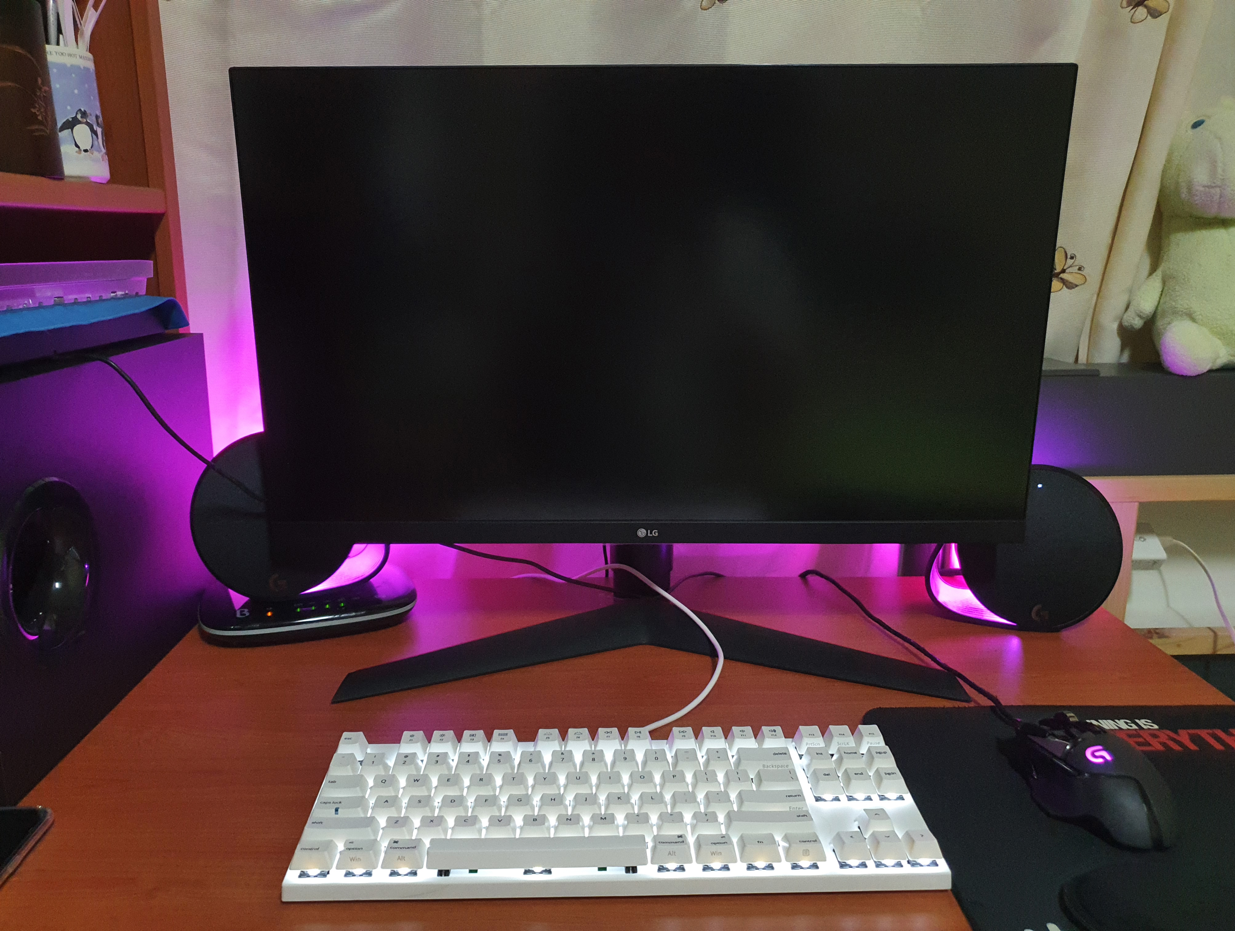 하지만 lg 27gl650f 앞에서는 조금 예전 세대의 느낌이 나죠?