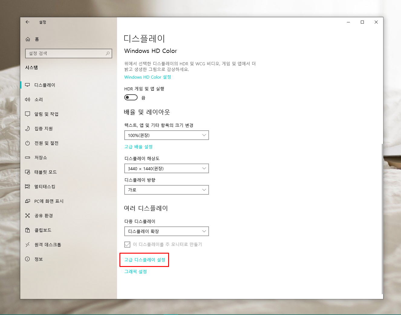 그리고나서 나오는 디스플레이 설정을 클릭합니다.
