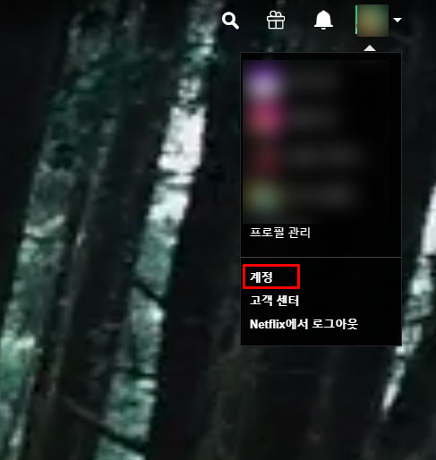 첫 번째로 넷플릭스 오른쪽 상단에 보시면 자신의 프로필을 클릭합니다.