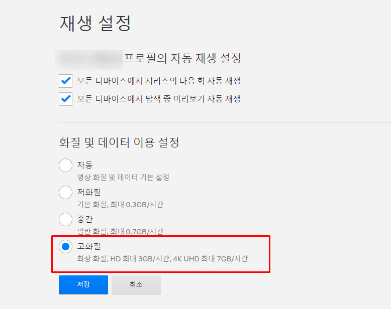 화면이 나오면 고화질을 선택해주시면 되겠습니다.
