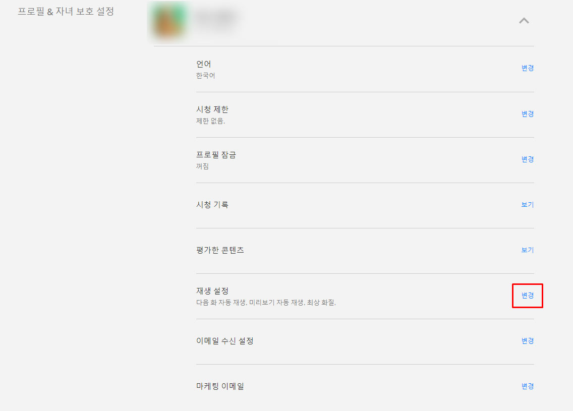 그다음 아래에 보시면 재생 설정의 변경을 클릭합니다.