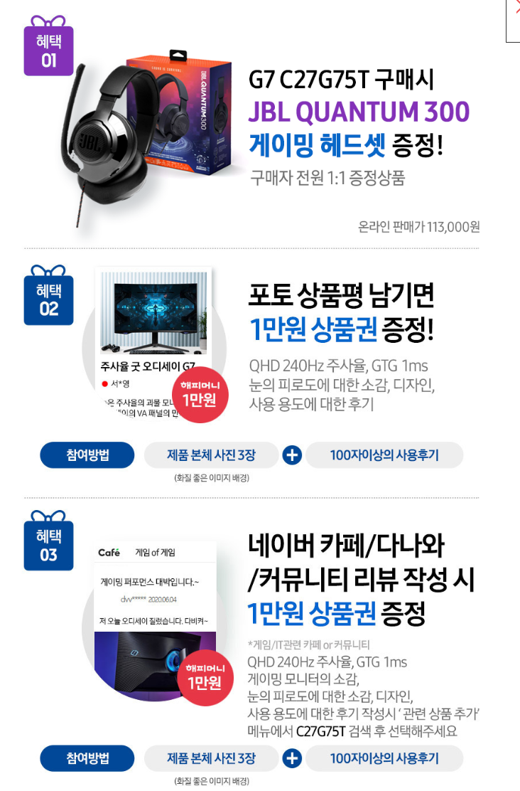 추가로 구매시에 JBL QUANTUM300 게이밍 헤드셋 등등 혜택이 있으니까 꼭 참고해주세요!!