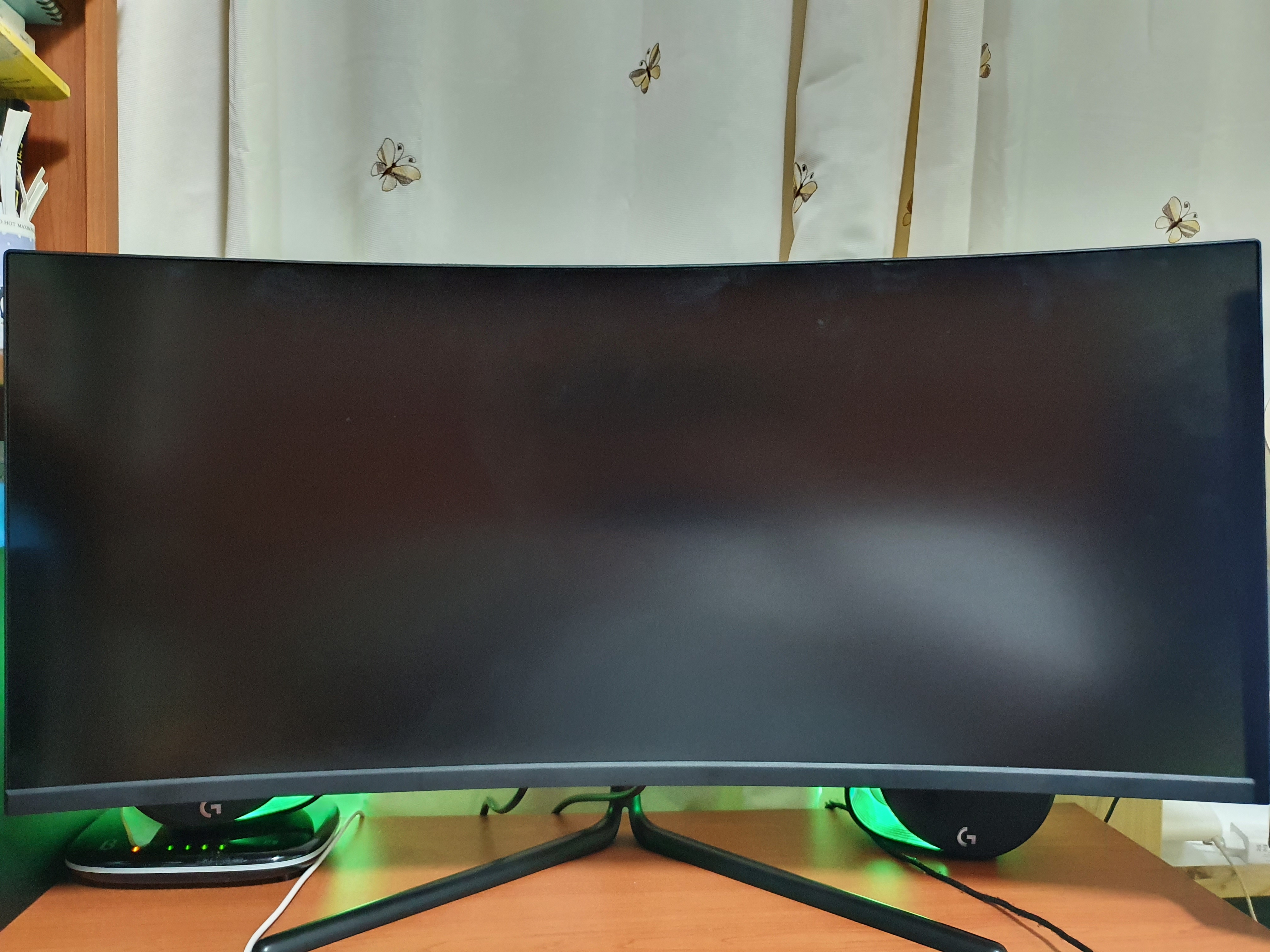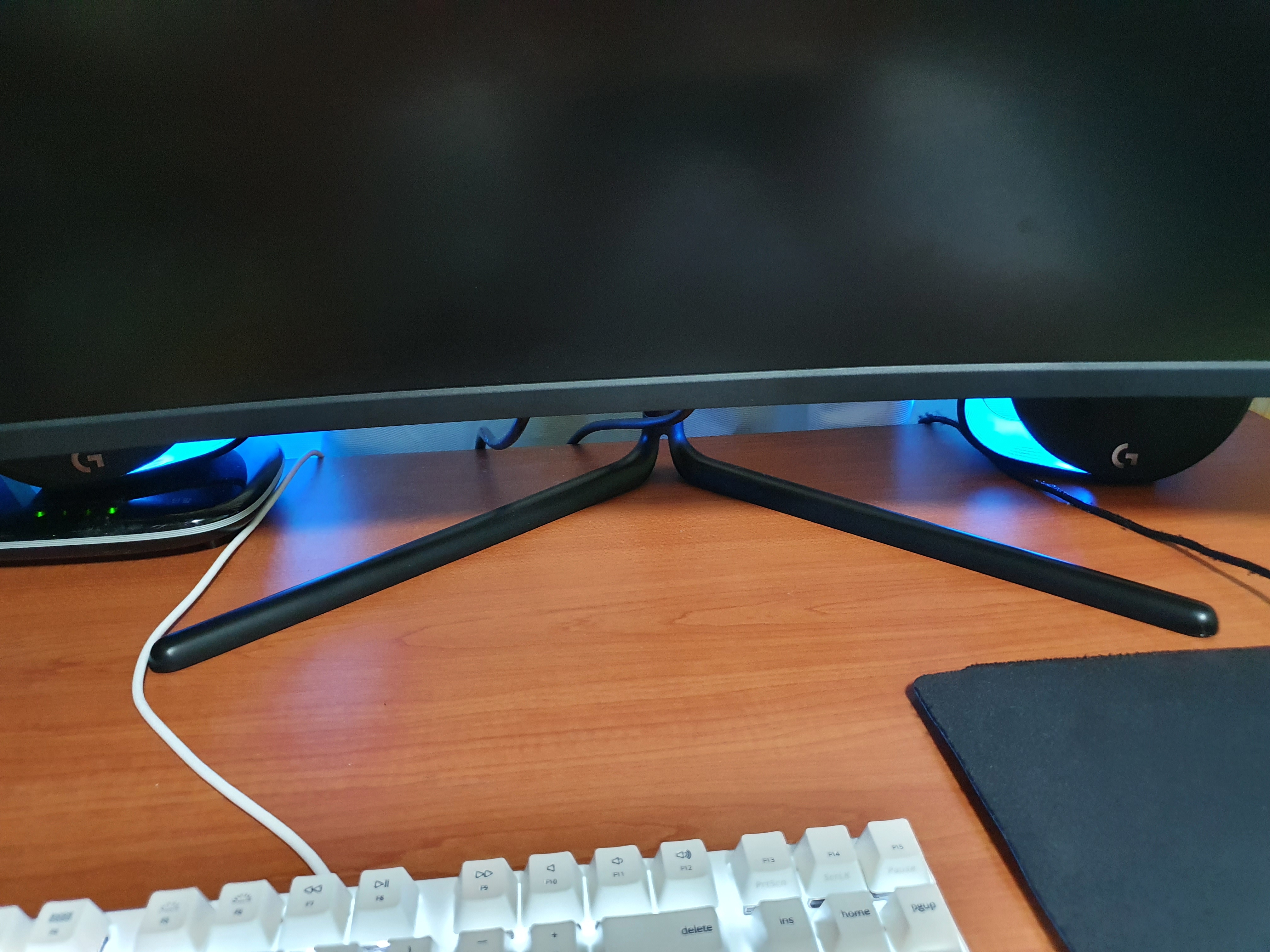 모니터 전체샷입니다.1500R이라고 꽤 많이 휘어져있습니다.