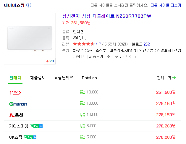 얼마전 나 혼자 산다에 나왔던 한혜진 불판 삼성 인덕션 더 플레이트 2구 NZ60R7703PW 가격과 그 외에