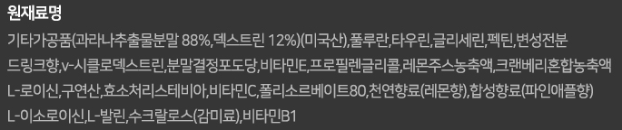 전성분표입니다. 안심하고 섭취할 수 있겠네요. 참고해주세요 :)