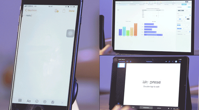 18가지의 RGB LED를 가진 키크론 K6는 타이핑할 때 타건음으로 귀가 즐거워지지만