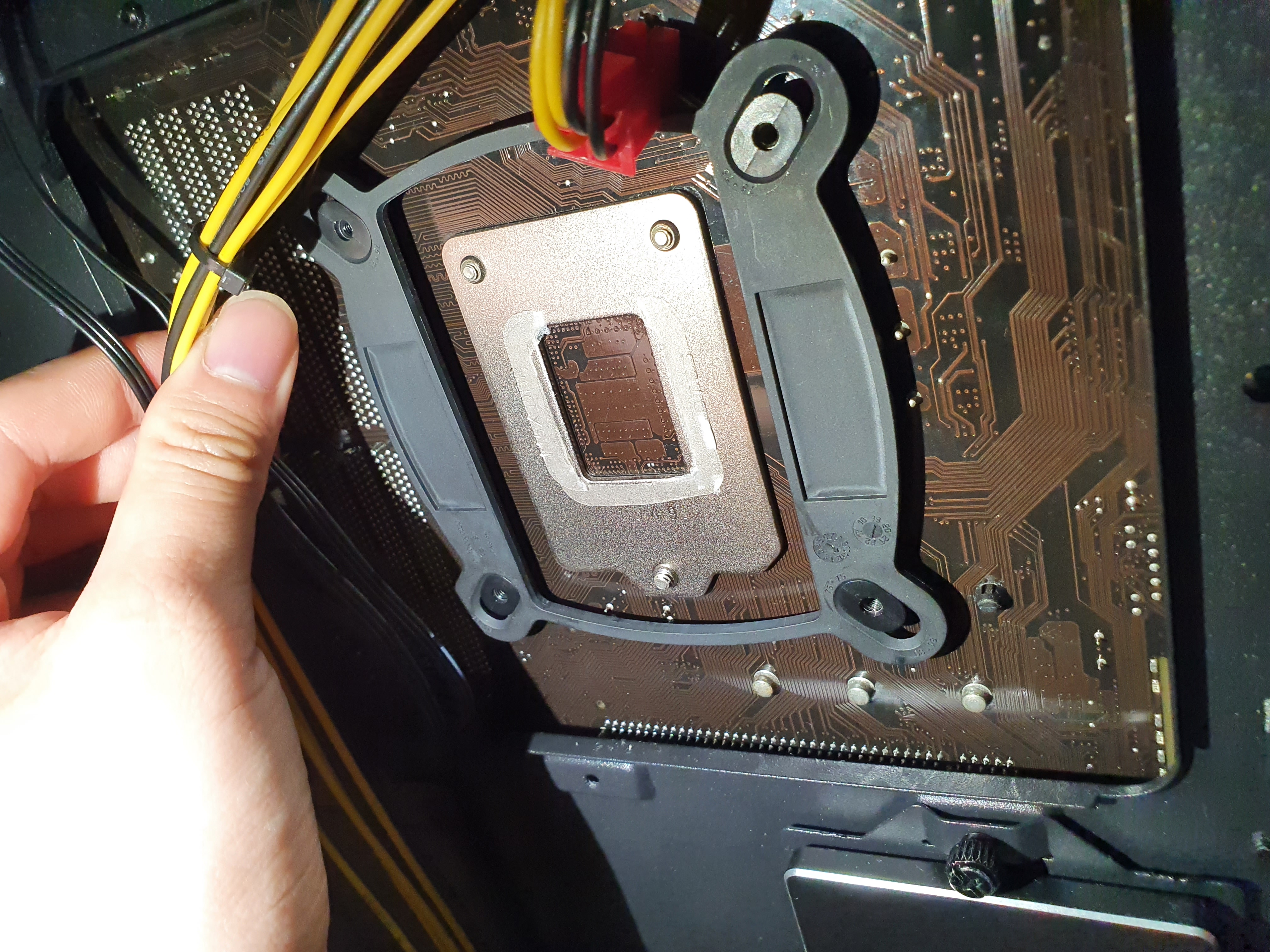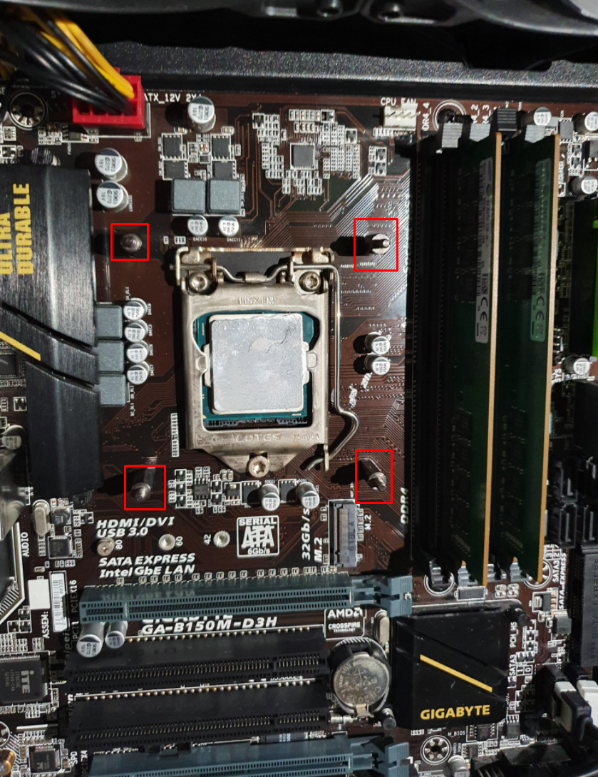 이제 제대로 부착을 해볼까요? 위의 사진처럼 부착을 한 뒤에 나사를 메인보드 뒤편과 연결되는 아까 체크한 부분에